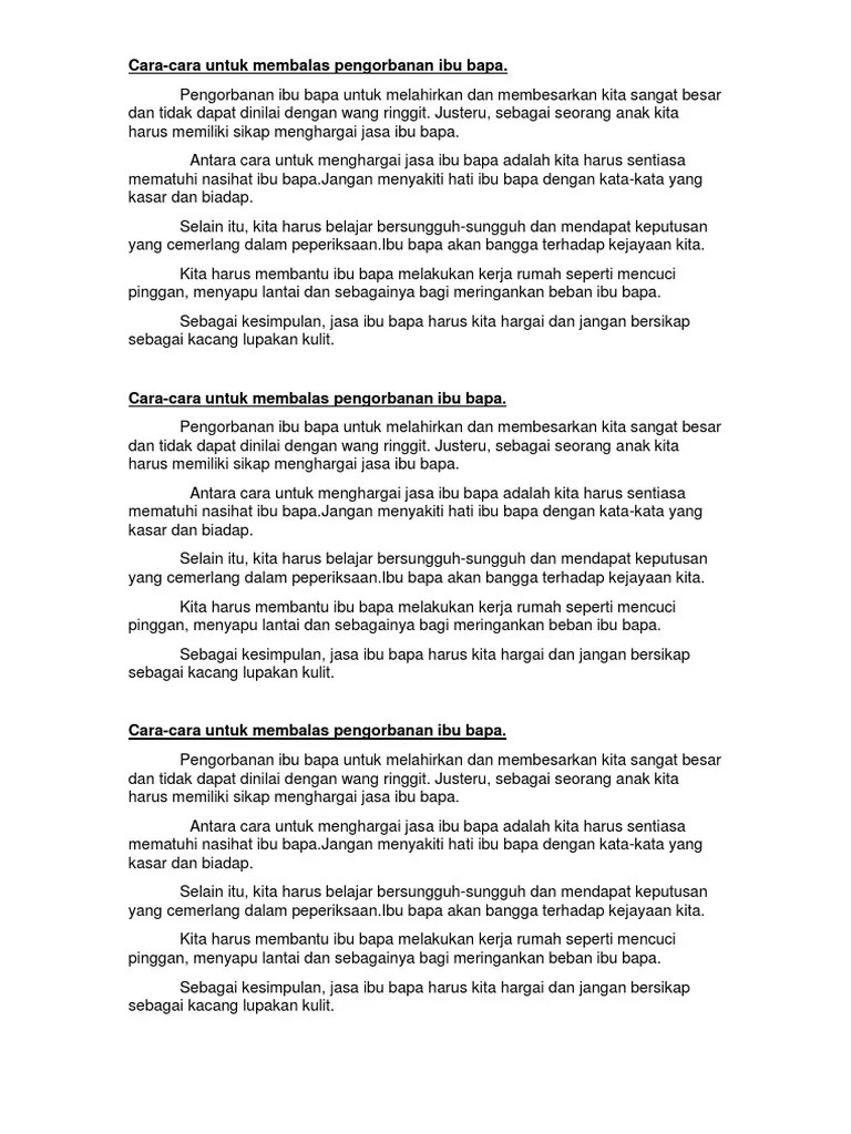 Ibu bapa akan lebih gembira sekiranya kita menjadi anak yang . Doc langkah langkah membalas jasa ibu bapa dygnrsyuhadha awangku academia edu. Karangan cara cara membalas jasa dan pengorbanan ibu bapa karangan spm cara membalas jasa ibu bapa cute766 serahkan saja semua pada tuhan .